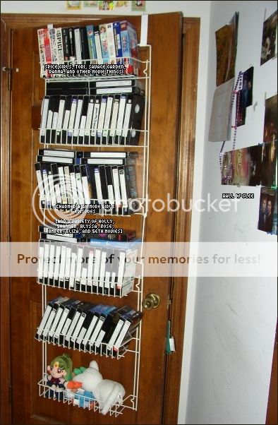 I'm not sure where the video holder came from. My dad got it for me [and I felt like a huge bitch since it seemed like he'd bought it for himself and that it was meant to hold something else entirely.] and I'm betting it came from one of those weird catologues where everything seems fantastic until you see the price. I'll poke 'round and see if I can find one of said catologues. and I'll learn to spell while I'm at it. :D