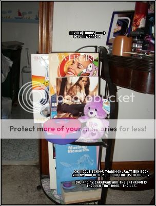 OOH! I love your room :D It seems bigger than mine. Is that a half bathroom off of it or a full bathroom? And I <3 the video holder :D Where'd you get it? :$ I want one like that :$